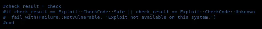 After reading the code we see that we must have an x64 session, for this we will use the module windows/local/payload_inject Then we edit the code of the exploit so that it does not make verifications commented on the function check_result