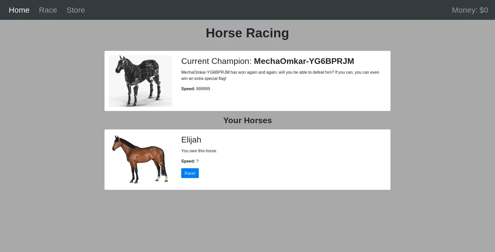 Sin embargo, al solo disponer de 100$ no se pueden comprar caballos capaces de batir al “campeón actual”.