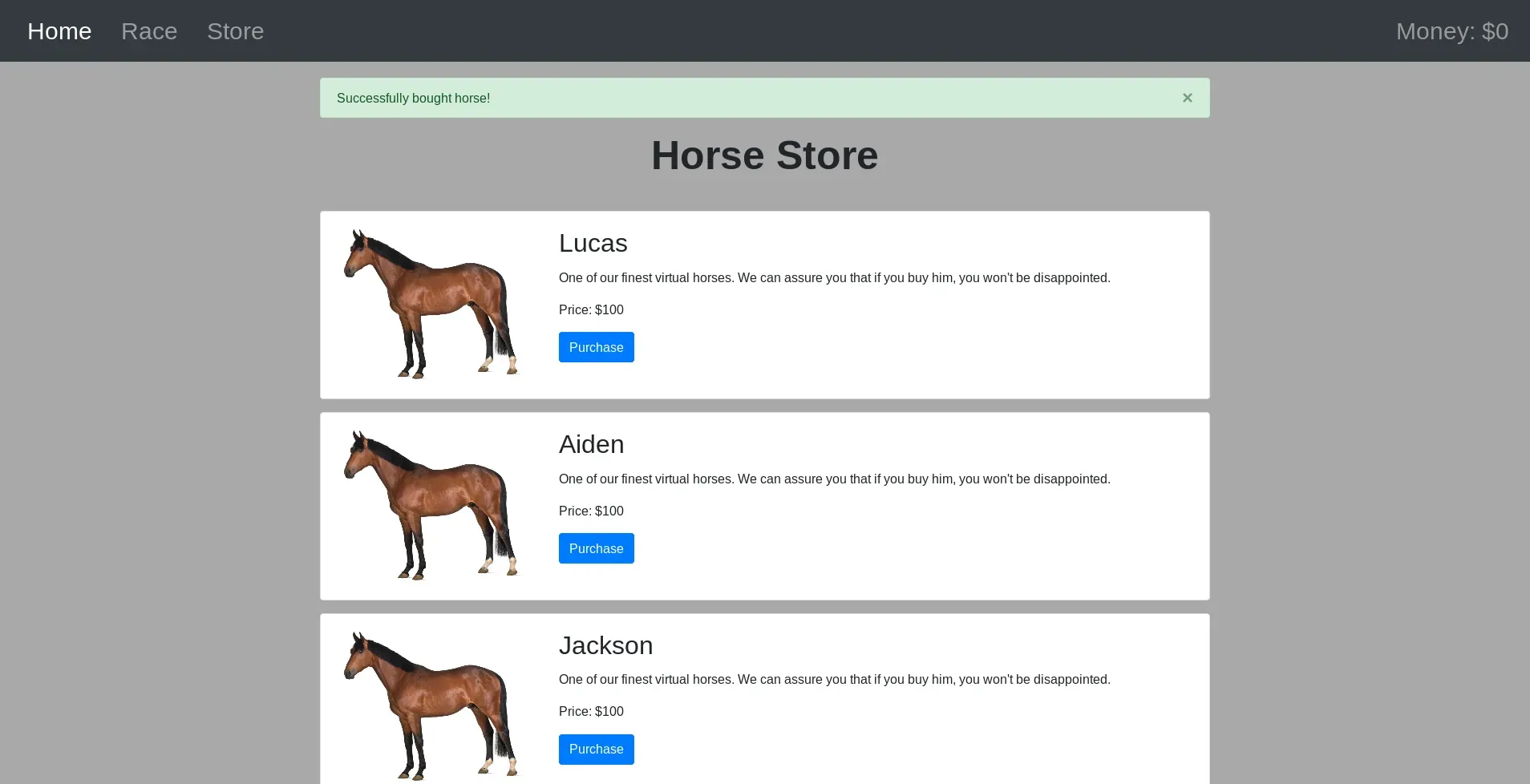 Y a través de ella nos permite registrarnos en la página, en la que podemos comprar caballos y competir en carreras con ellos.