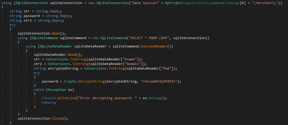 Descargamos todos los ficheros y abrimos los binarios (CascAudit.exe y CascCrypto.dll) con DnSpy o cualquier otro decompilador de .NET: