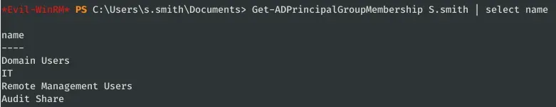 A mí me sorprendió el grupo “AD Recycle Bin” ya que es el único distinto con respecto del usuario anterior (s.smith).