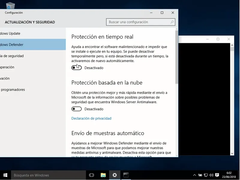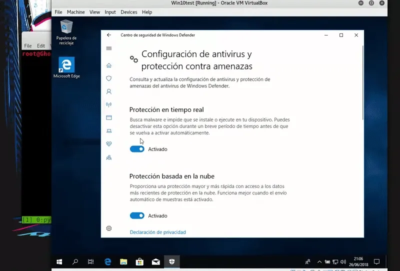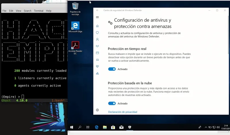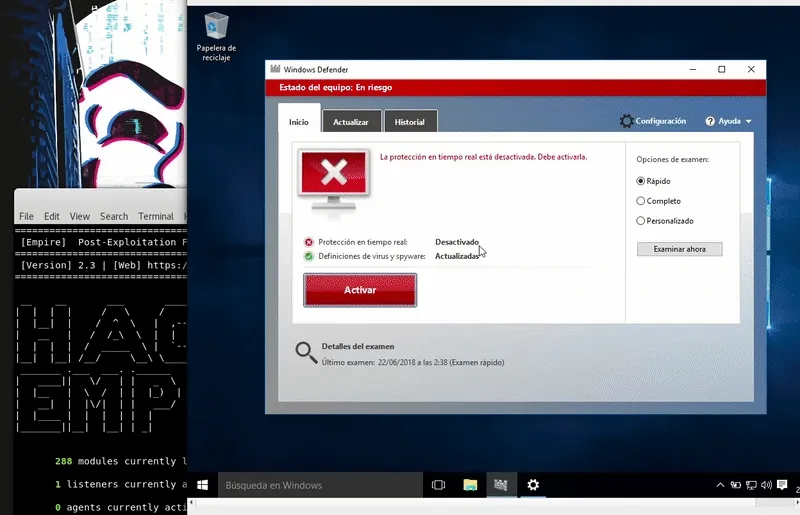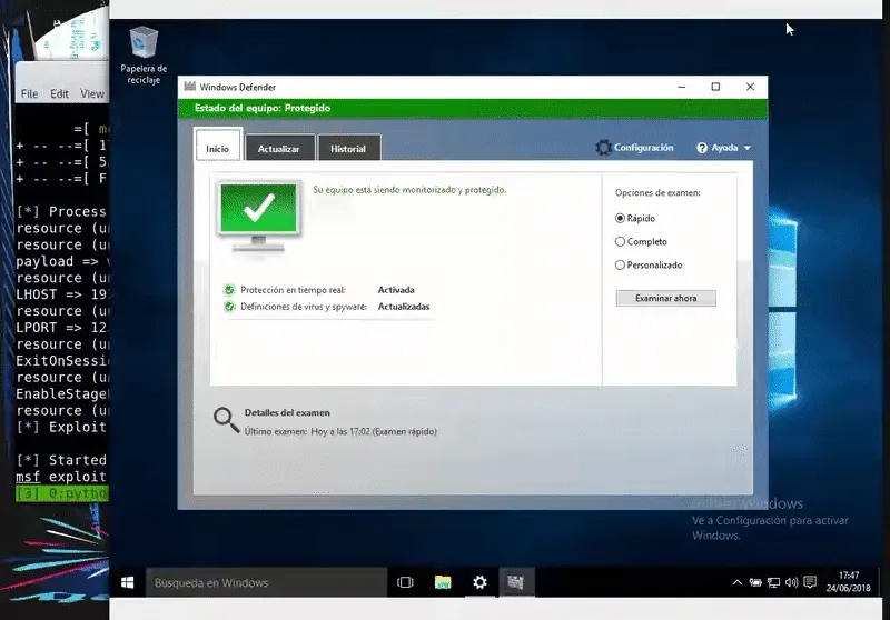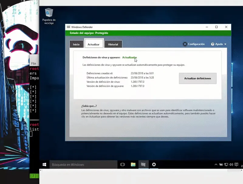 Nuestra máquina víctima será un Windows 10 actualizado con los ultimos parches y definiciones de Windows Defender