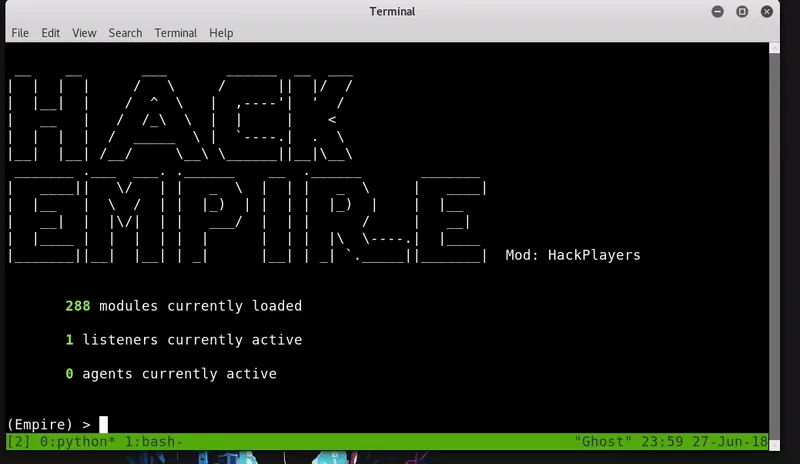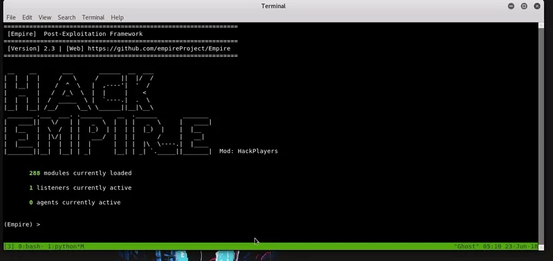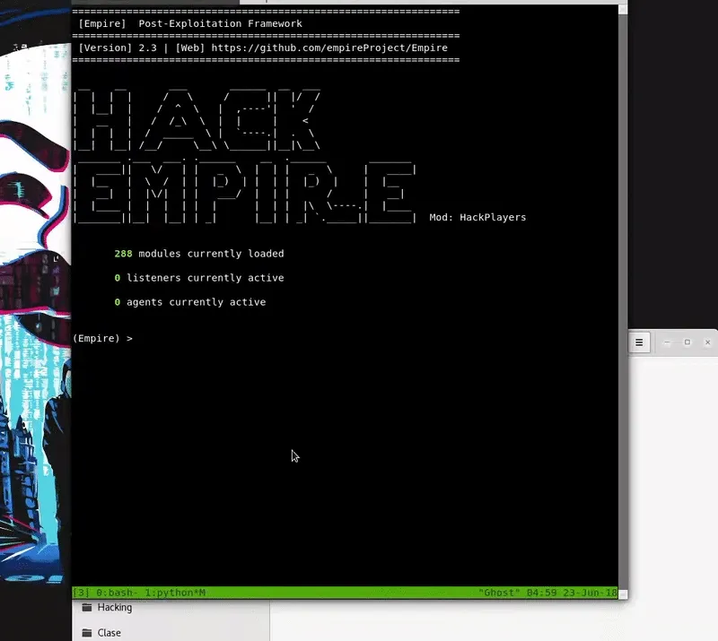 Una vez nuestro archivo esta hosteado procederemos a ejecutar el comando con el que se ejecutará nuestro archivo malicioso y obtendremos un agente de Empire.