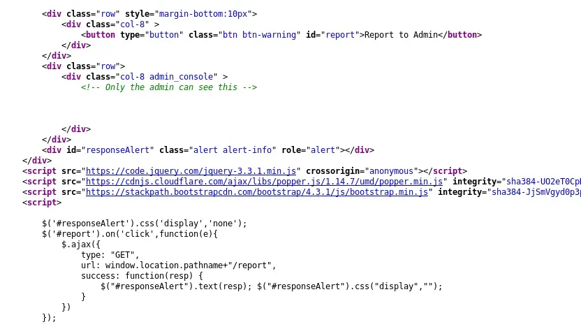 Asi obtenemos un archivo con el código fuente de la página que el administrador visitó.