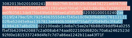 3082013b020100024100c4b07fefc8e36c05c0da434221aebf47dbf 70e5189ad892408f3ad81182a9e0700a07c9d7c66c86c7a39602123 ee0f605613de97fde49fe68396ee0af3f5f5f3020301000102402ae c519f2479ecf2fc79254063555d4cf345e10c0e3d9eb60c76112121 02fbe52d45e9aa1357813e4460b30889f75fabf72f049d5c3f4af2f 81984267a8bd2b1022100eabc1de8a7c5ee2e76b88d39ddf94a0255 f5ef3b6209420887c2a008ab474aad022100d6820c70a6a2462523d 92fd0e1815337249d4fe7c7d7a86ea1242b11aa43f71f Con ayuda de la fuente mencionada (OpenSSL 512 bit RSA Private Key Breakdown) obtenemos el valor del modulus y del privateExponent que serán suficiente para obtener una rsa.