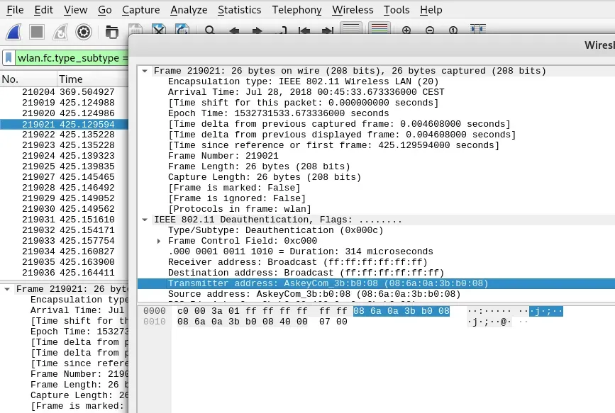 https://packetwrangling.com/2017/11/02/weathering-a-deauth-storm-with-wireshark/