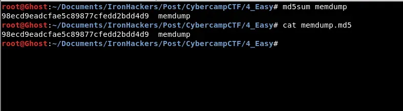 Se ha realizado la incautación de un equipo sospechoso en las oficinas de cierto cuerpo de seguridad del estado. Se te proporciona una imagen de volcado de memoria en la cual tendrás que determinar si el equipo, en el momento del volcado, contenía algún tipo de malware o backdoor y localizar la IP del atacante. La FLAG será la IP del atacante localizado. Fichero: memdump y memdump.md5