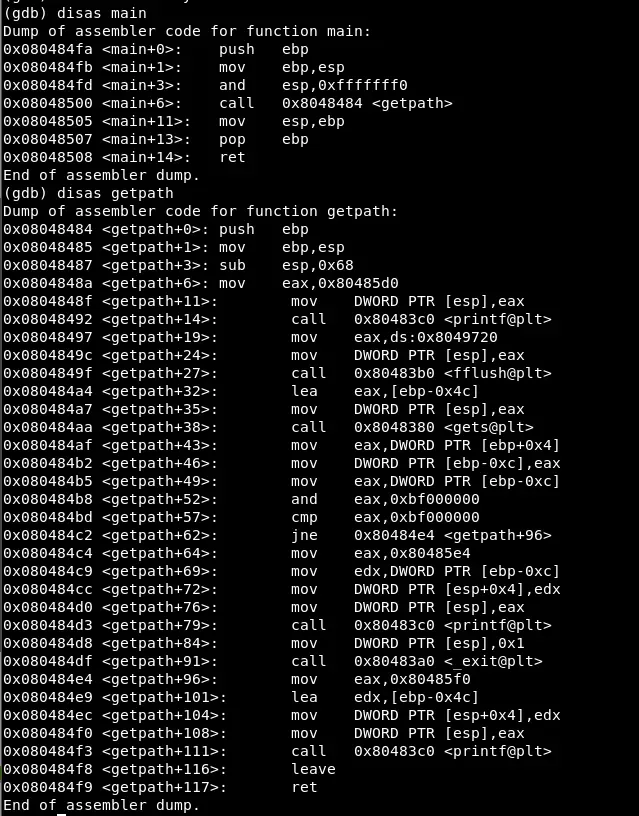 Supongamos ahora que no tenemos el código fuente, desensamblemos el main() y getpath():