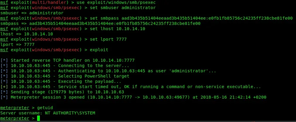 Entre todas las contraseñas encontramos una que parece ser un hash NTLM. Vamos a conectarnos a través de smb/psexec: