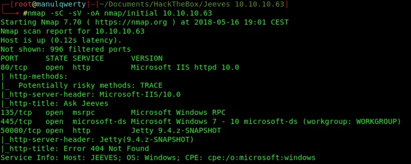En este post haremos la maquina Jeeves de HackTheBox, acaban de retirarla y no hay mejor momento para enseñaros cómo la resolví. Es una maquina Windows de un nivel medio que me gustó mucho. Mi nick en HackTheBox es: manulqwerty Si tenéis alguna proposición o corrección no dudéis en dejar un comentario, así aprendemos todos.