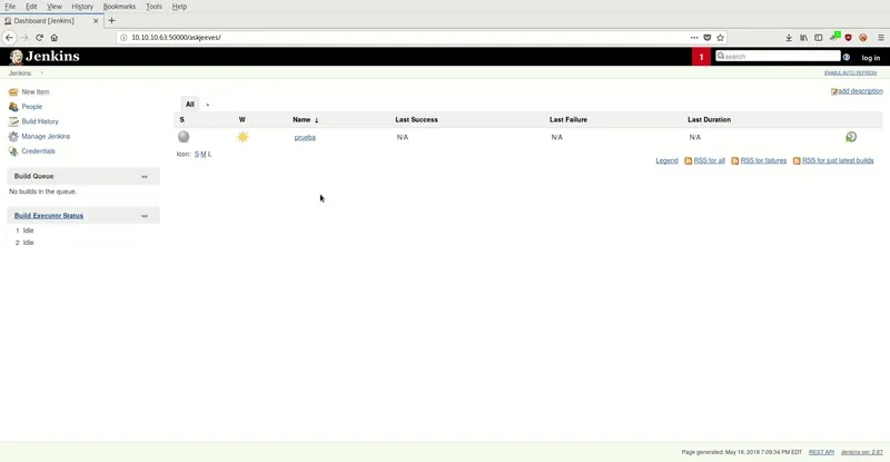 Vemos que es un Jenkins (software de Integración continua open source escrito en Java). Trasteando un poco vemos que podemos crear proyectos