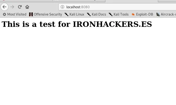 ssh -L 8080:localhost:80 -N -f test@172.16.185.132 El resultado es que tenemos acceso al http de la víctima en localhost:8080