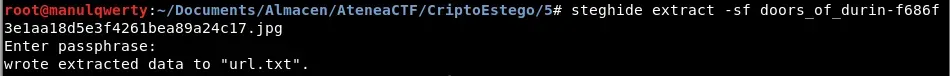 Vemos que el comando con la contrasña ‘Mellon’ nos extrae otro fichero: url.txt, vamos a echarle un ojo: ![]()