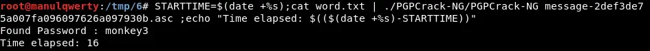 Una vez tenemos el diccionario podemos usar la herramienta https://github.com/kholia/PGPCrack-NG