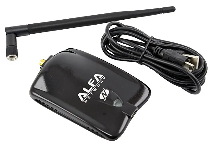Una vez instalada necesitaremos contar con al menos dos interfaces WiFi, una se utilizará para levantar el punto de acceso y la otra para desauntentificar a los usuarios. La tarjeta WiFi que levante el punto de acceso debe poder ponerse en modo monitor. Yo usaré una Alfa que son de las más utilizadas para auditorias WiFi.