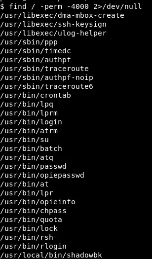 find / -perm -4000 2>/dev/null