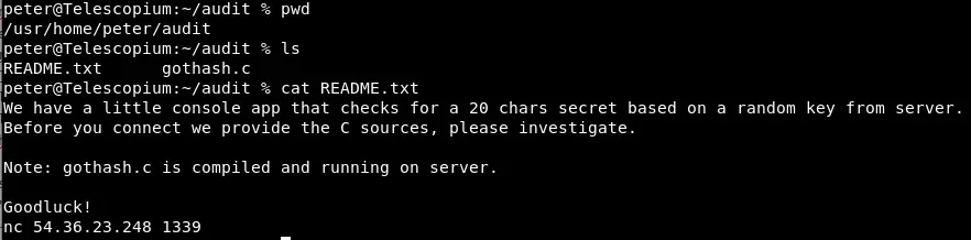 En /usr/home/peter/audit nos encontramos el reto de código; leamos el README: