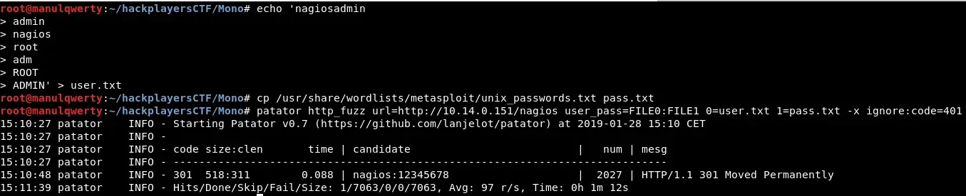 Tercera parte del write-up del CTF H-C0N: Austrinus (acceso básico vía FTP anónimo y ejecución remota en .cmd.jsp, escalada a root abusando de sudo en nagios init script con reverse shell, y análisis forense de MFT para encontrar URL de exfiltración).