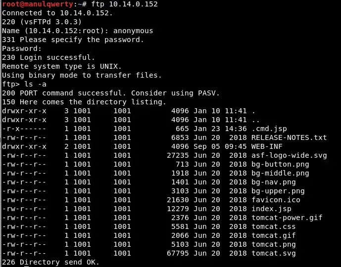 Como veis podemos acceder al ftp anónimamente, vamos a ver si hay algún fichero que nos permita vulnerar el sistema:
