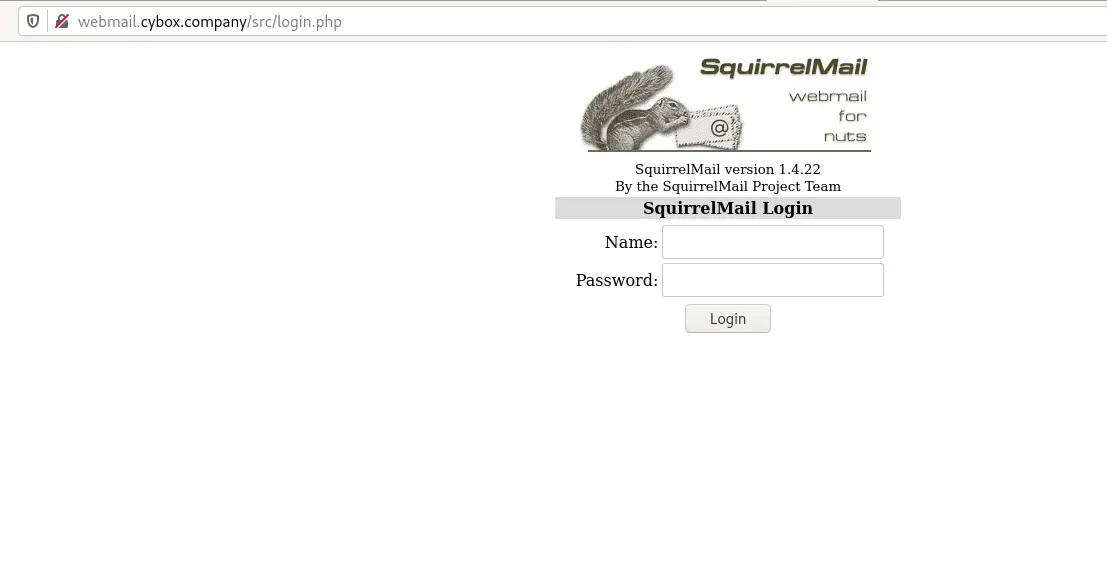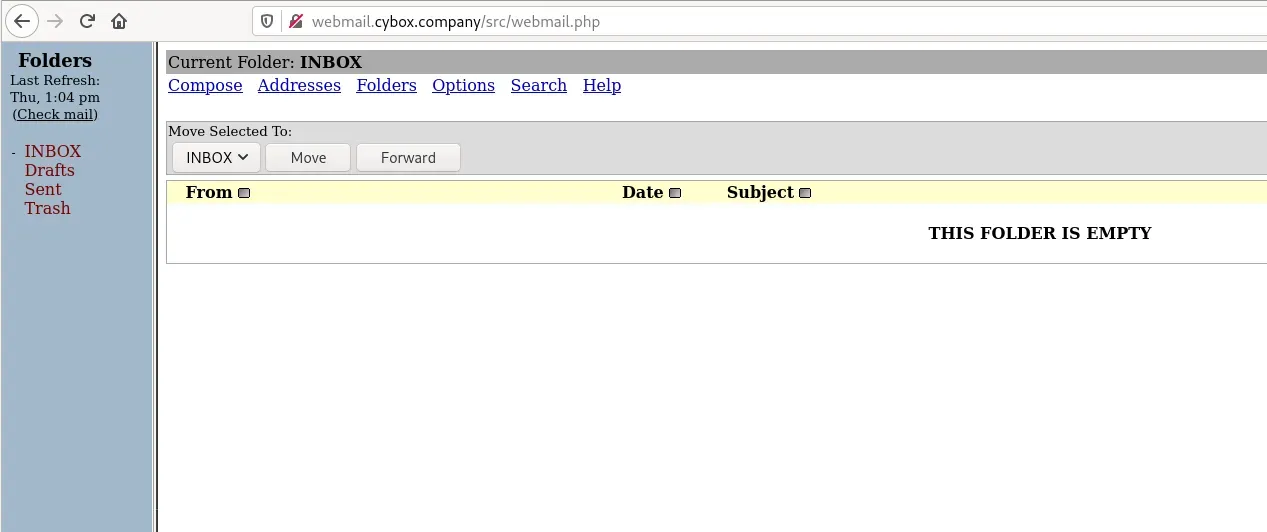 Un webmail que nos permite acceder con el usuario creado en register.cybox.company