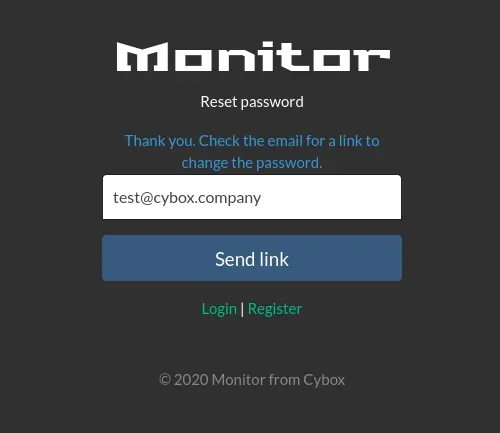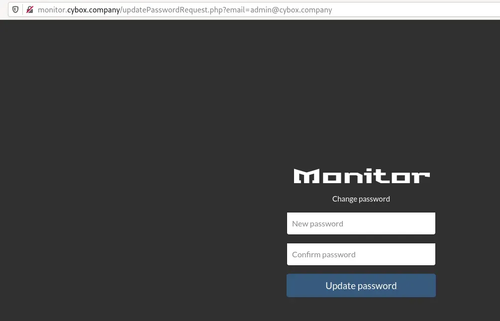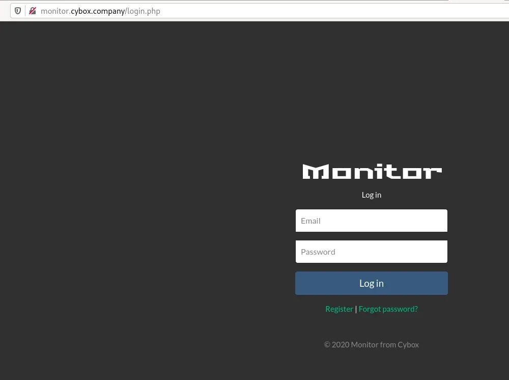 En este punto se analizan las diferentes aplicaciones existentes para encontrar posibles vulnerabilidades. La web de monitor.cybox.company tiene la típica funcionalidad de olvide la contraseña. Se procede a analizar esta creando una cuenta a través de register.cybox.monitor para utilizar el correo electrónico proporcionado.