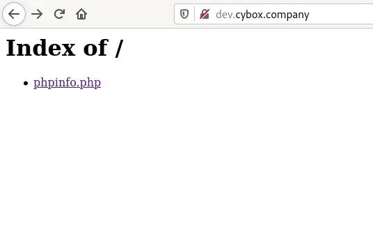 ffuf -w /root/Documents/Wordlists/SecLists/Discovery/Web-Content/raft-large-directories.txt -u http://cybox.company/FUZZ No encontramos nada de utilidad por lo que continuamos enumerando. Al haber encontrado un dominio de la organización decidimos enumerar subdominios que pudieran tener asignado un virtualhost en el servidor web. Para ello utilizaremos ffuf con un diccionario de subdominios e indicándole el tamaño de la respuesta del virtualhost por defecto como filtro.
