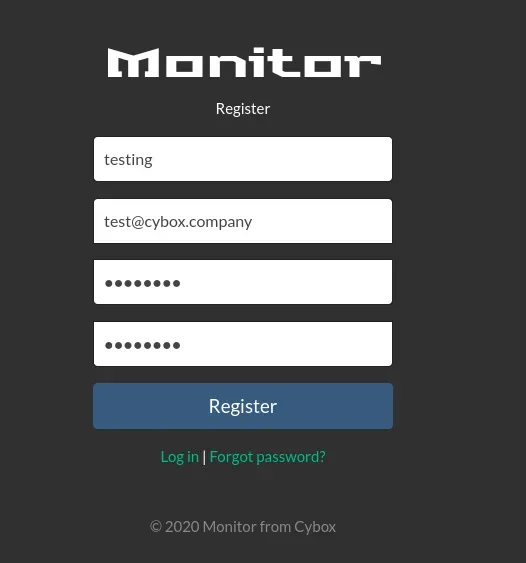 Ahora utilizaremos el correo electrónico del usuario test para crear una cuenta en la web de monitor.cybox.company.