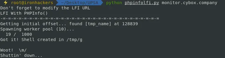 Ejecutamos el exploit obteniendo la creación de un fichero PHP con nuestro payload en la carpeta temporal.