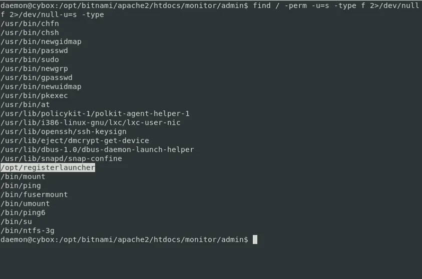 En uno de los pasos de la enumeración analizamos los ficheros con SUID activado encontrando un fichero sospechoso.