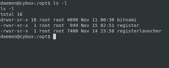 Al acceder a la carpeta donde se encuentra el archivo encontramos el registerlauncher y el register. El binario registerlauncher es el encargado de llamar al código de register.