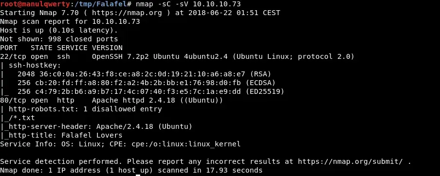 En este post haremos la máquina Falafel de HackTheBox, acaban de retirarla y no hay mejor momento para enseñaros cómo la resolví. Es una maquina Linux de un nivel alto Mi nick en HackTheBox es: manulqwerty Si tenéis alguna proposición o corrección no dudéis en dejar un comentario.