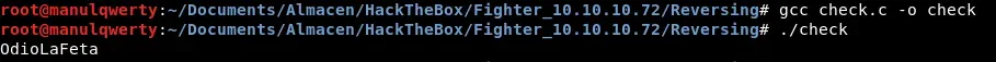 La funcion check() ejecutara XOR con 9 cada caracter de la variable aFmFeholH Para reversear esto me hice un pequeño programa en C, aun que lo mas sencillo seria hacer patching