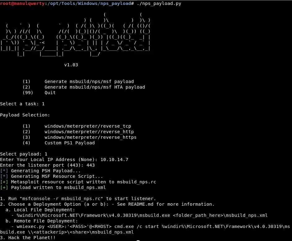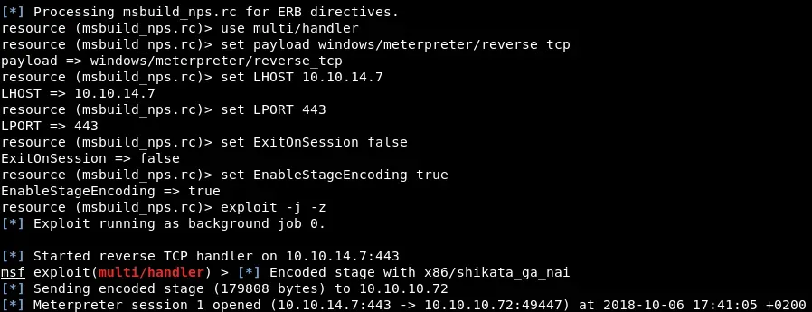 cd C:\\Users\\sqlserv upload /tmp/msbuild_nps.xml msbuild_nps.xml C:\\Windows\\Microsoft.NET\\Framework\\v4.0.30319\\msbuild.exe msbuild_nps.xml