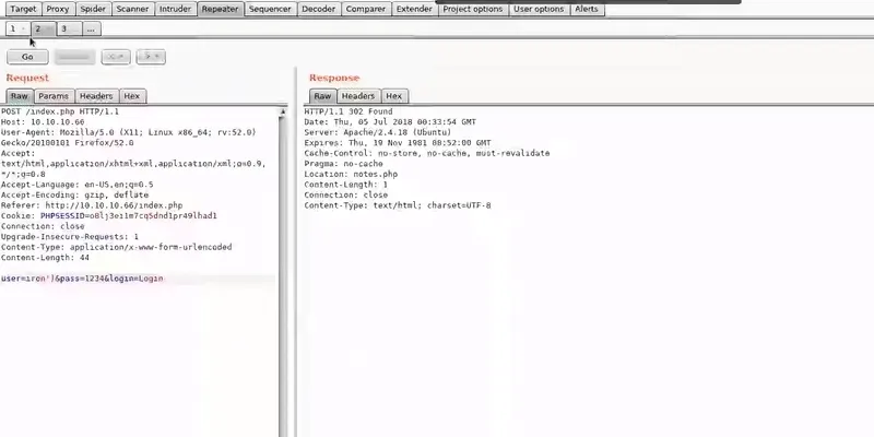 headers = {"Accept":"text/html,application/xhtml+xml,application/xml;q=0.9,*/*;q=0.8","Upgrade-Insecure-Requests":"1","User-Agent":"Mozilla/5.0 (X11; Linux x86_64; rv:52.0) Gecko/20100101 Firefox/52.0","Referer":"http://10.10.10.66/index.php","Connection":"close","Accept-Language":"en-US,en;q=0.5","Accept-Encoding":"gzip, deflate","DNT":"1","Content-Type":"application/x-www-form-urlencoded"} paramsPost['user'] = payload
