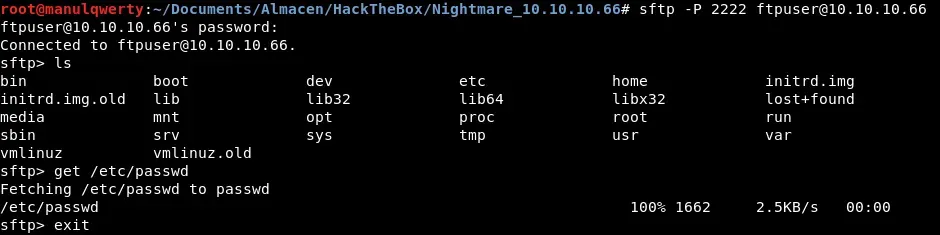 Con las credenciales ftpuser:@whereyougo? podemos entrar al sftp: