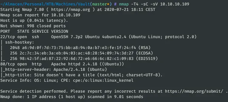 nmap -T4 -sV -sC 10.10.10.109