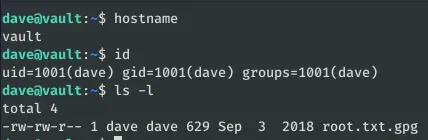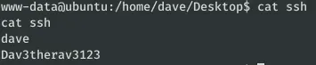 En el fichero /home/dave/Desktop/ssh encontramos las credenciales para acceder por SSH con usuario Dave.