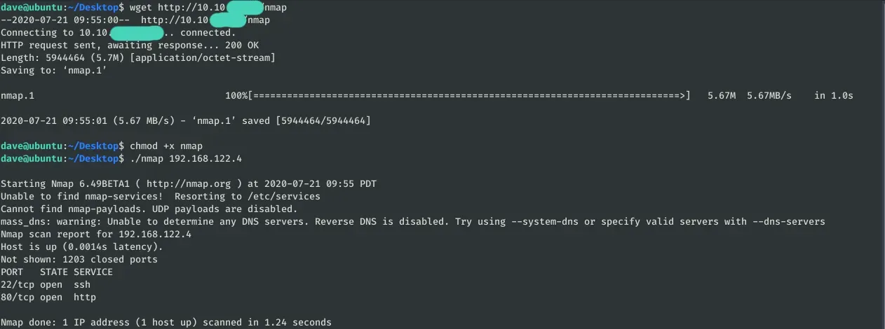 Para poder enumerar fácilmente las IPs del fichero Servers, nos podemos subir un binario de Nmap.