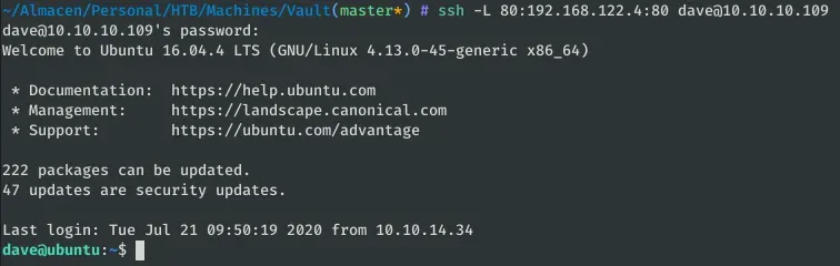 ssh -L 80:192.168.122.4:80 dave@10.10.10.109