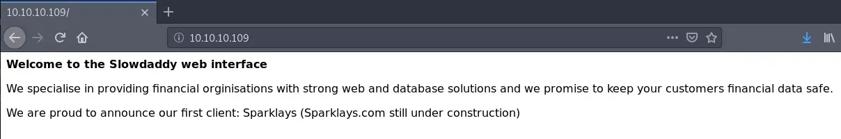 Únicamente encontramos dos puertos abierto: SSH y HTTP. Vamos a echarle un ojo a la web. En el index nos encontramos con el siguiente mensaje: