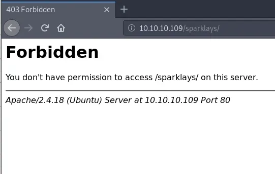 /sparklays nos devuelve Código 403 (Forbidden), así que vamos a ejecutar otro buscador de directorios desde ahí:
